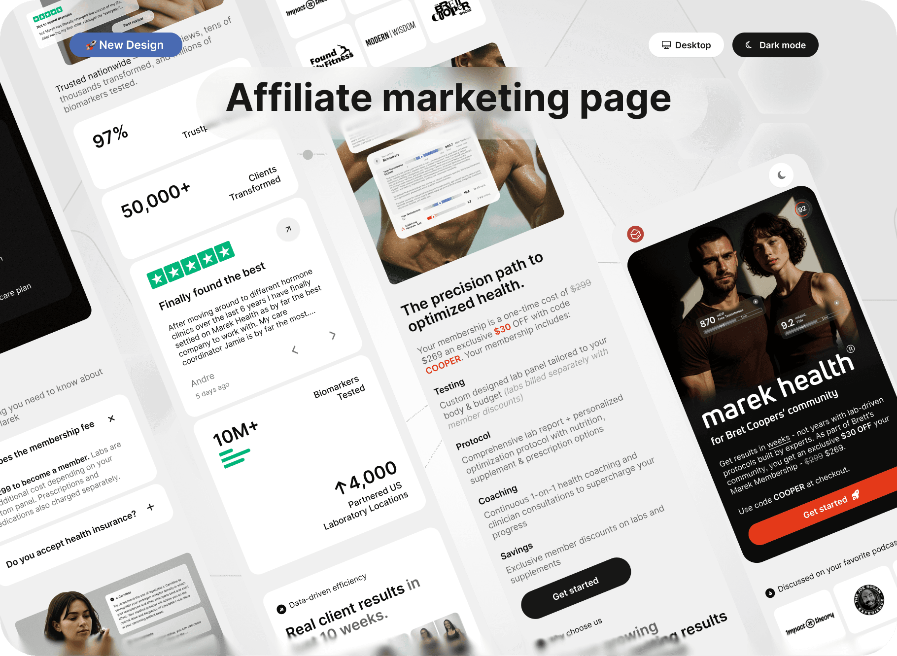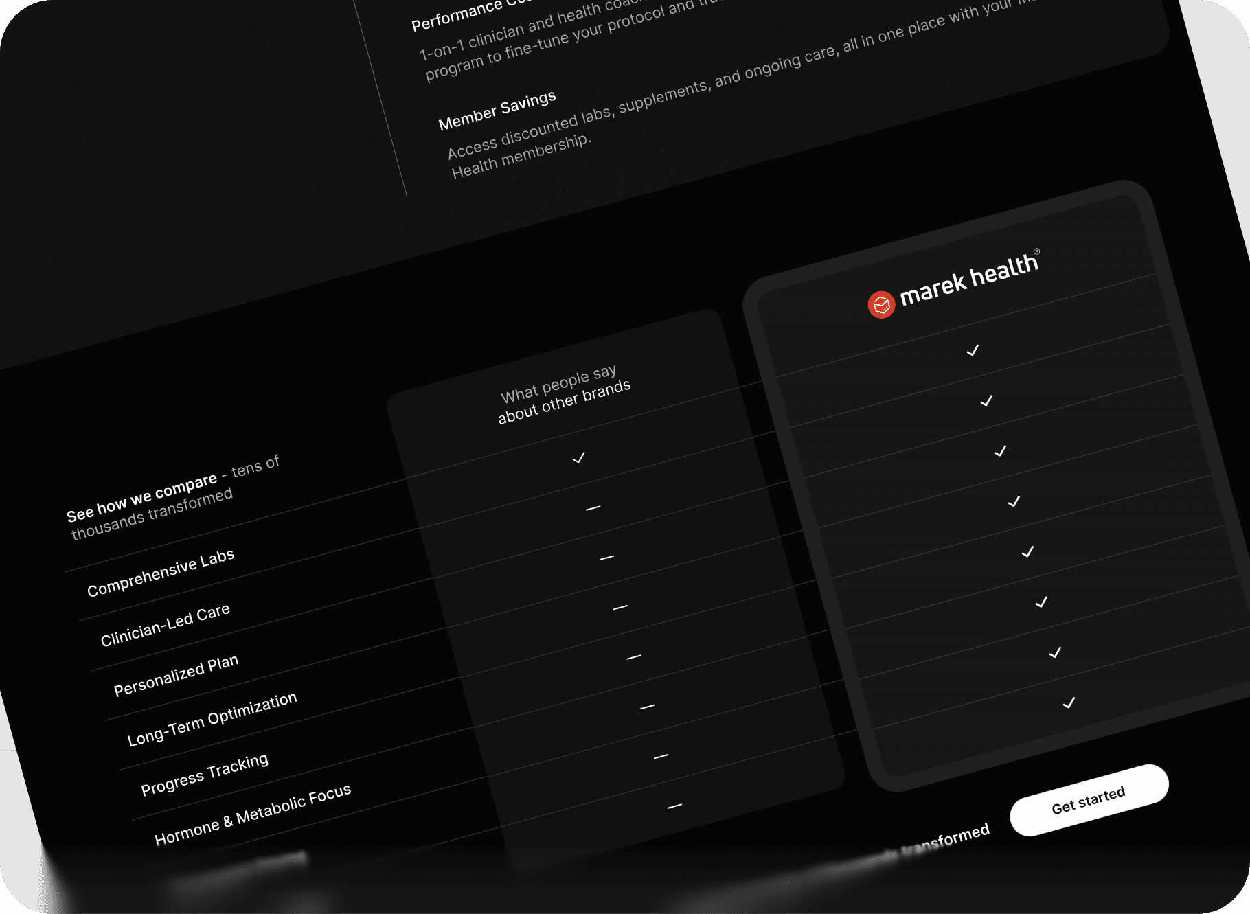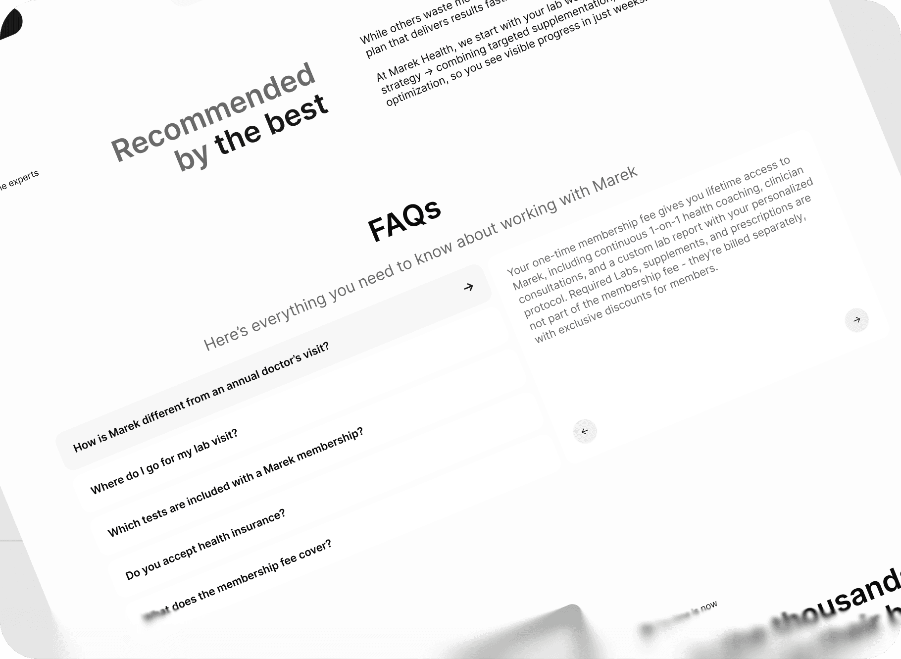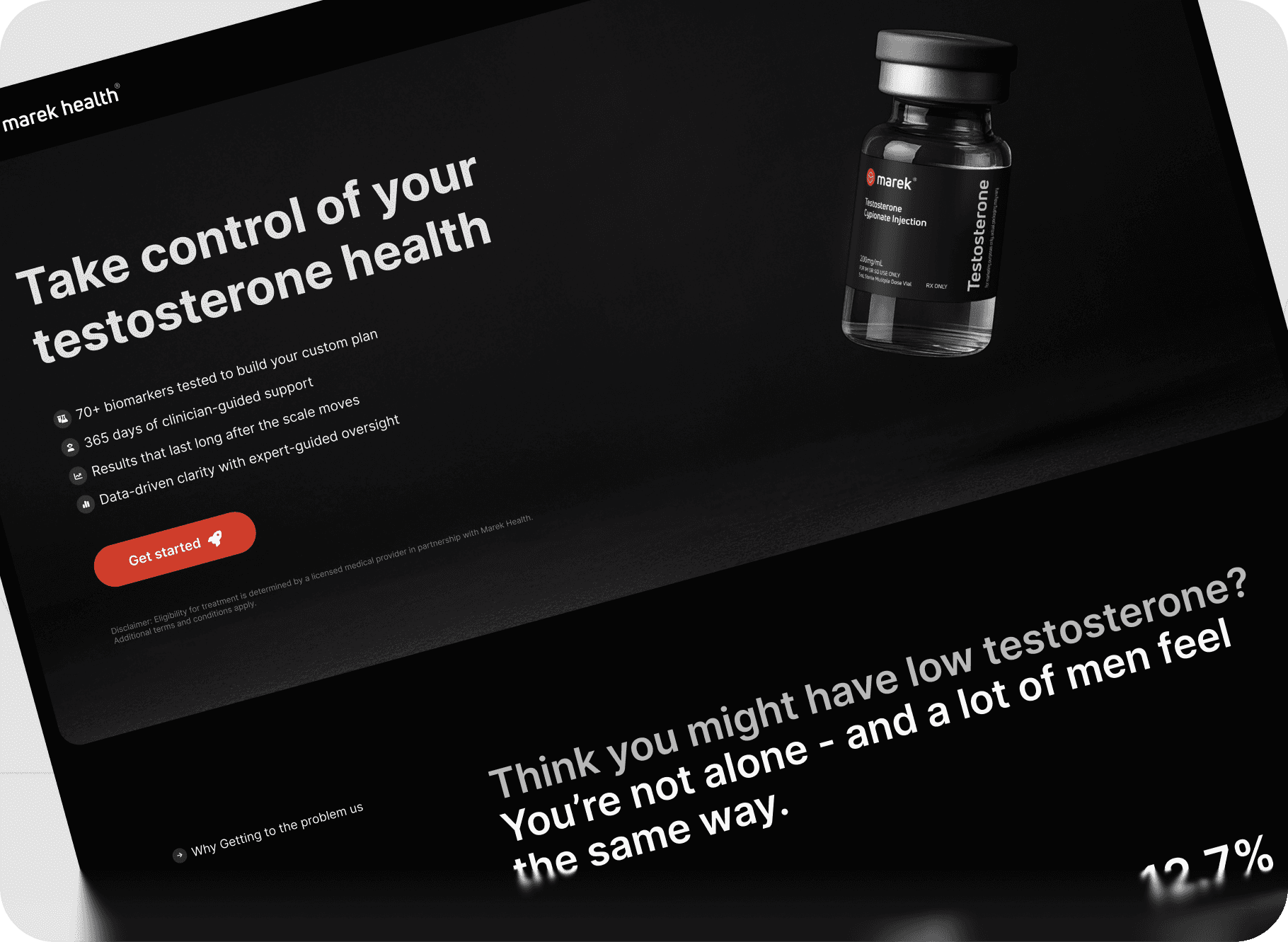 High-impact product marketing pages designed to clearly explain testosterone replacement therapy (TRT), build trust, and guide users toward consultation and enrollment. The experience translates complex medical information into structured, digestible content while maintaining a calm, authoritative tone.